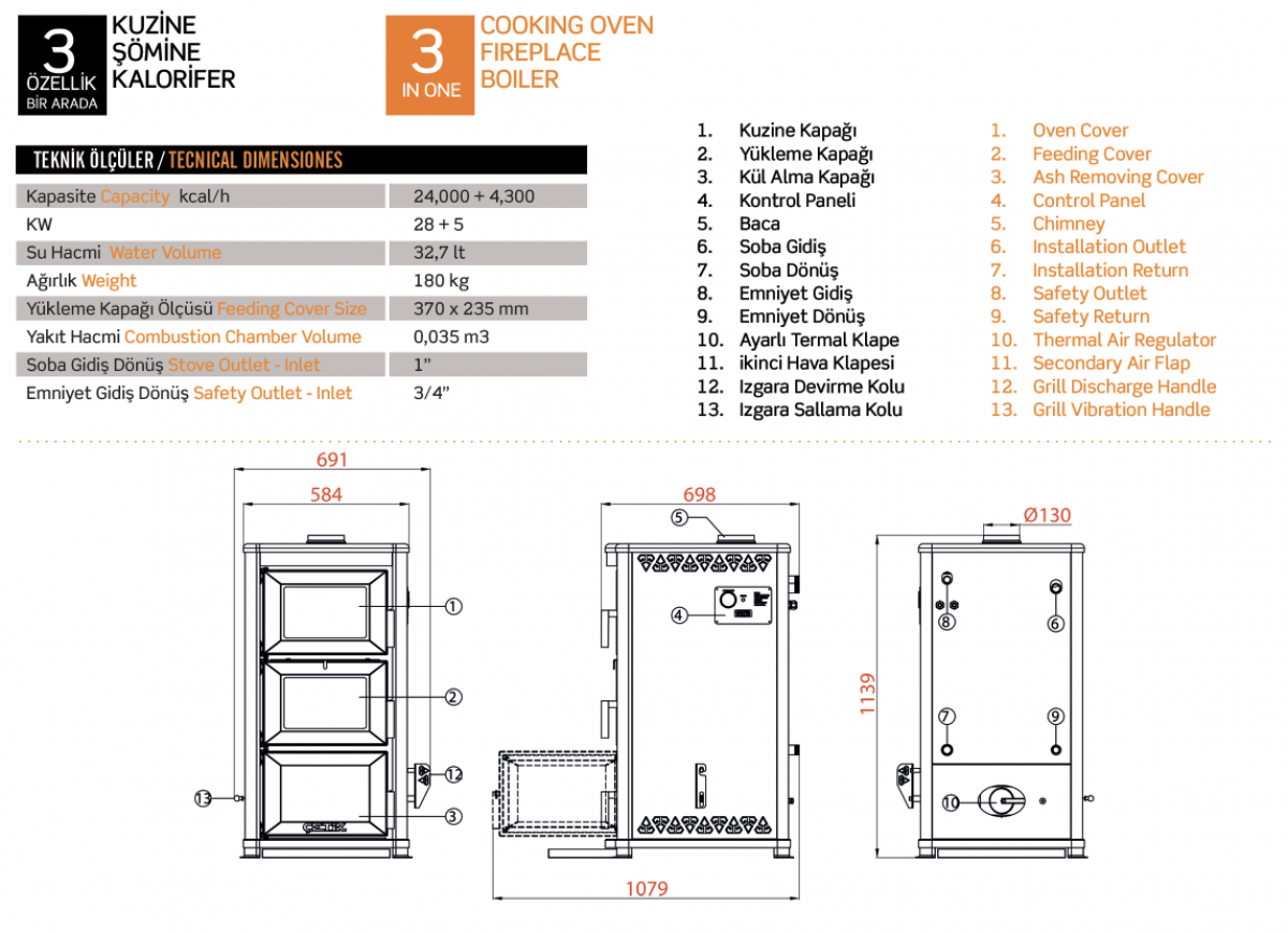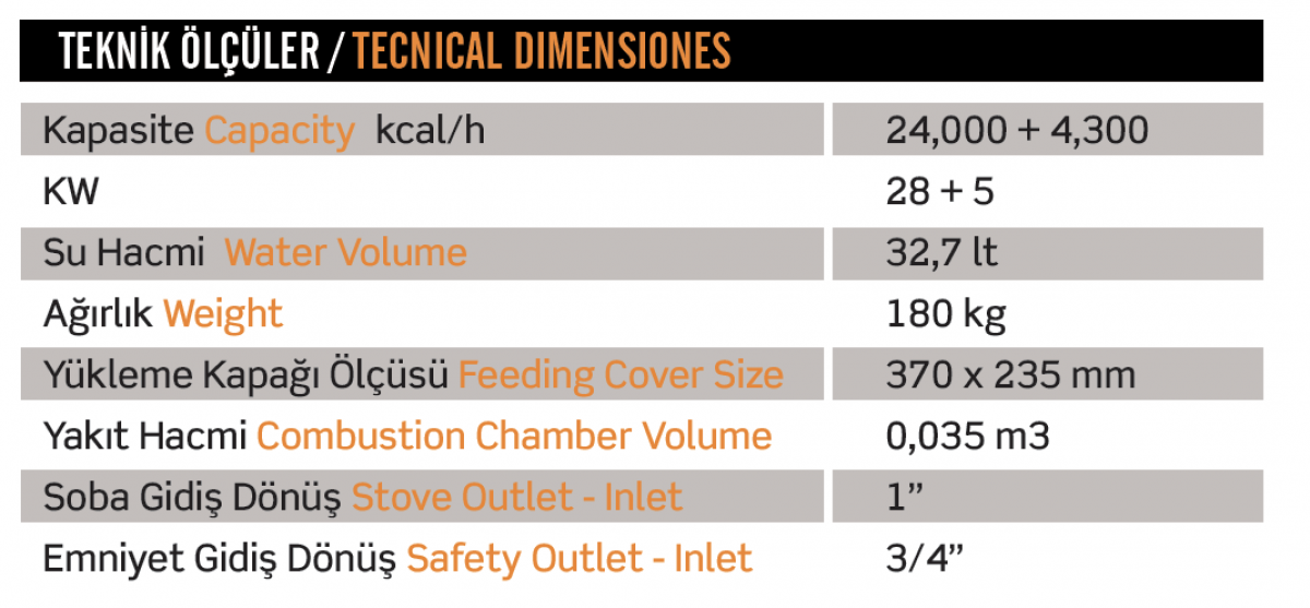 Katı Yakıtlı Kat Kaloriferi 3 Geçişli Alev Kırıcı Dilimli & Borulu
