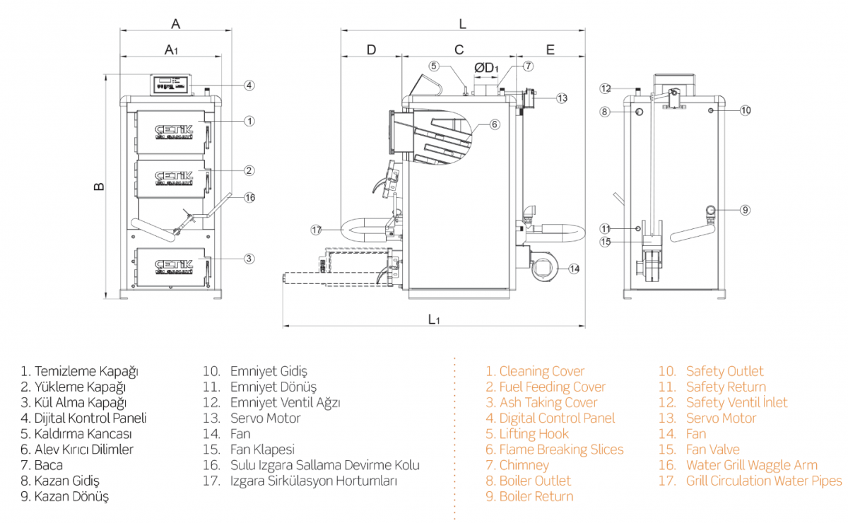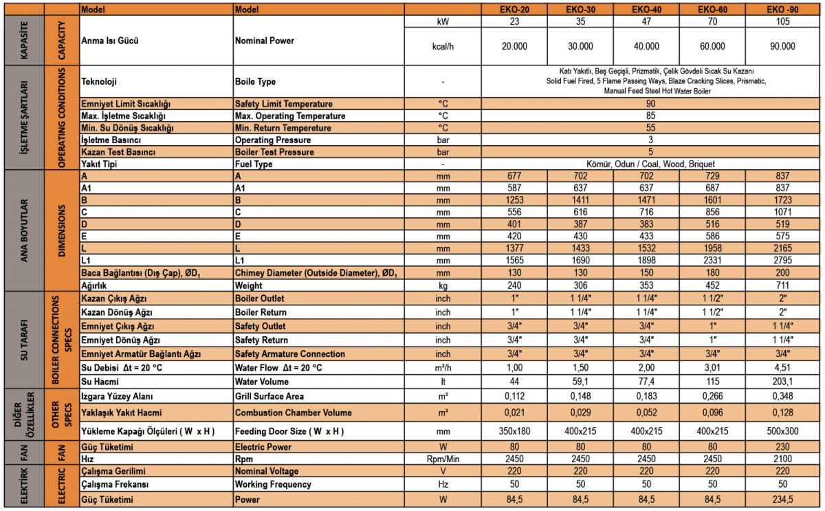 | YAKIT ÖZELLİĞİ | Kömür, odun ve alternatif parça yakıt yakabilme, |