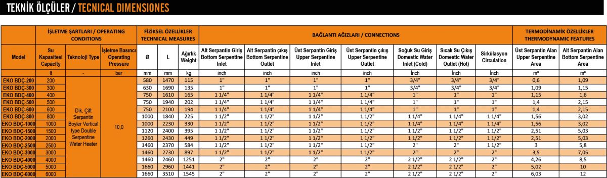 | • Çift serpantinli izoleli modeller 100 litre'den 6000 litre kapasite arasındadır. |