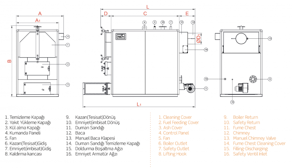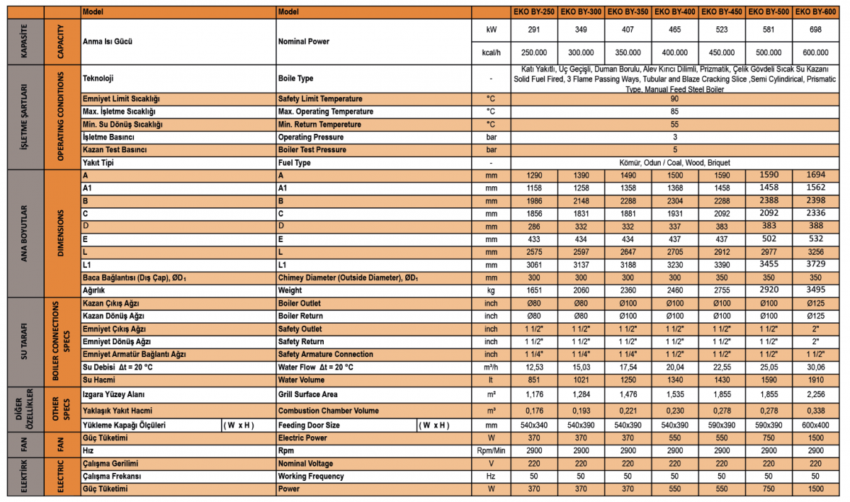 | YAKIT ÖZELLİĞİ | Kömür, odun ve alternatif parça yakıt yakabilme, |