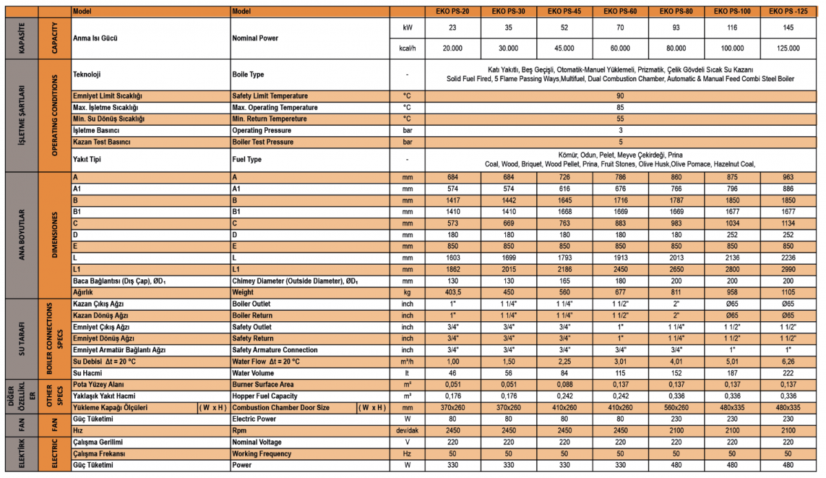 | YAKIT ÖZELLİĞİ | Fındık-erik-ceviz kömür, pelet, meyve çekirdekleri ile otomatik, |