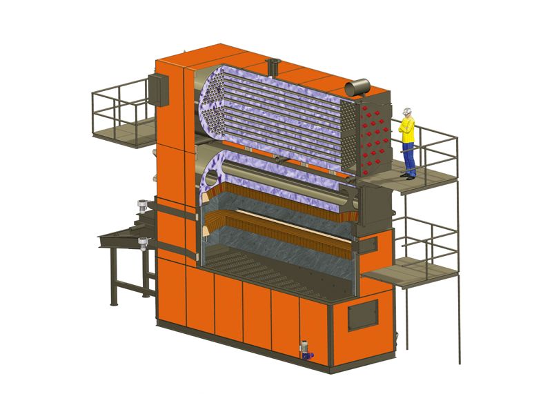 3 Geçişli Duman Borulu Silindirik - Katı Yakıt - Otomatik Yüklemeli - Buhar Kazanı