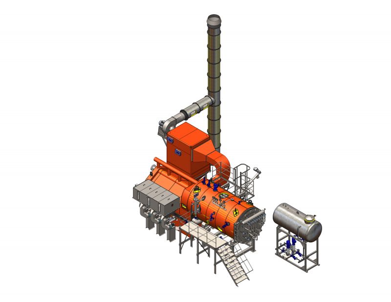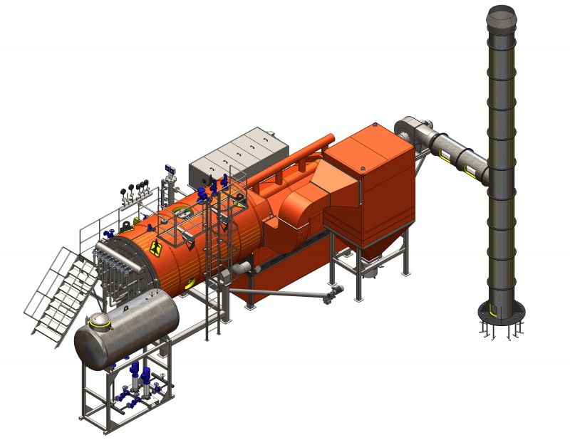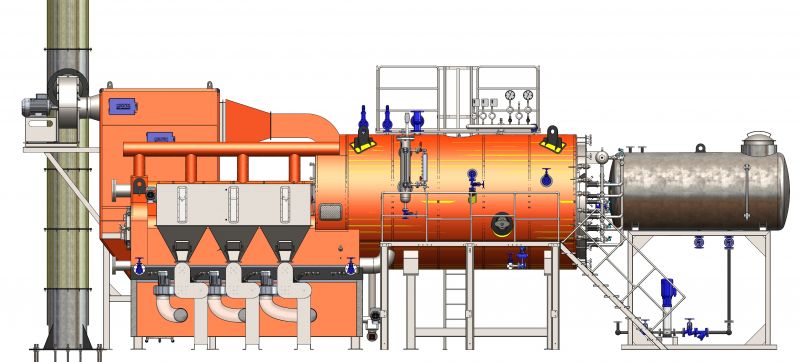 3 Geçişli Duman Borulu Silindirik - Katı Yakıt - Otomatik Yüklemeli - Buhar Kazanı